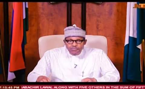 President Muhammadu Buhari during his national broadcast on Thursday.