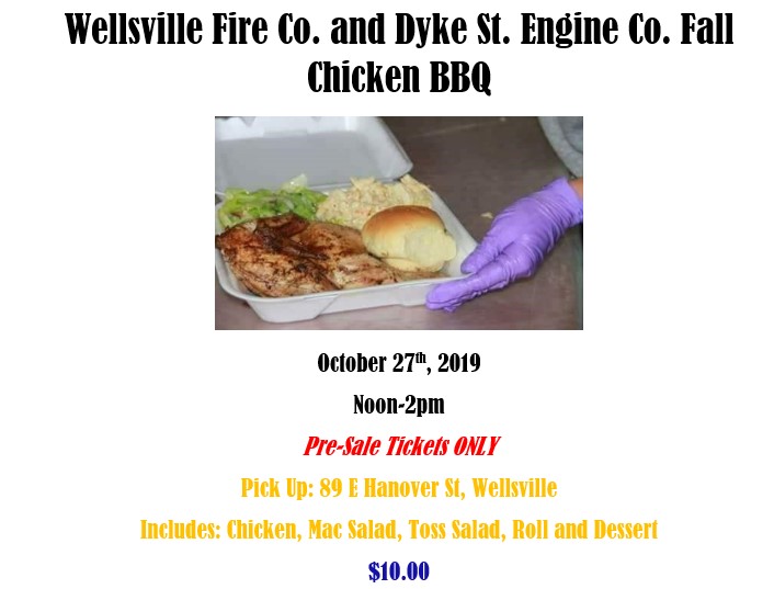 Wellsville Fire Co/Dyke Street Engine to hold Fall Chicken BBQ – October 27th