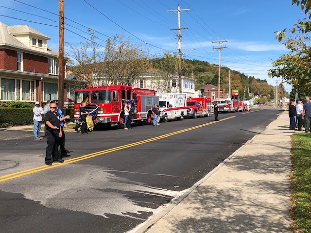 Sunday’s this time of year are dedicated to football. However, scores of First Responders spent this afternoon at the JW Embser Funeral Home in Wellsville, as volunteers from several agencies said farewell to 62-year-old Edward H. Wycoff, Jr. of Bolivar. The life member of the Bolivar fire department died September 23rd. Wycoff also served with the Wellsville Volunteer Ambulance Corps. Friends and colleagues lined the street and funeral home to say, one last goodbye. Wycoff also worked for the Village of Wellsville for a number of years. Westons Mills from Cattaraugus County understood the pain and sent fire and EMS apparatus to Bolivar to cover during the funeral. They were also pressed into service with emergency calls. Here are some scenes of how EMS and firefighters show respect: