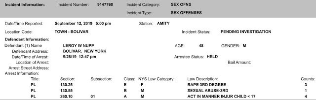A Bolivar man is in jail on $50,000 cash bail – accused of several sexually-related crimes. State Police Thursday afternoon arrested 48-year-old LeRoy W. Nupp. He was charged with three felony counts of third-degree rape as well as four lesser counts of child endangerment and a single count of sexual abuse. The alleged crimes occurred in the Town of Bolivar and were reported September 12th. State Police Investigator Cyle Pomeroy said “the charges come following a lengthy investigation which revealed that Nupp had been involved in a sexual relationship with a child less than 17 years old.” Nupp was arraigned in Bolivar court and remanded to the Allegany County Jail. Bail was set at $50,000 cash or $100,000 bond. Further court action is pending.