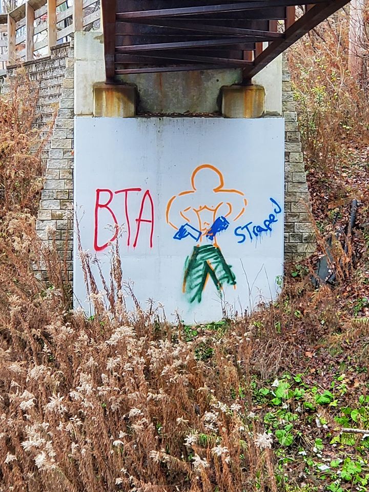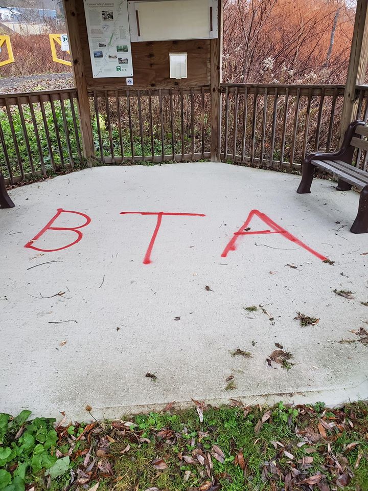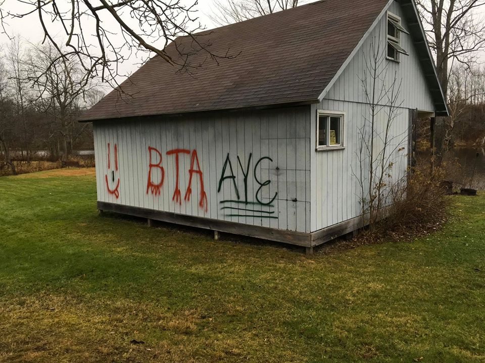 The Cuba Police Department is seeking the public’s assistance. Sometime between November 8th and November 10th an unknown individual or individuals caused criminal mischief in the Prospect Street Bridge area along with the Greenway Trail off Bull Street as well as a private camp. This individual or individuals spray painted or “tagged” several structures and signs with the following insignia shown in the attached pictures. If you have any knowledge about who is responsible for causing this damage please reach out to our office at 585-968-1666, send a private message to our Facebook page or send an email to tips@cubapd.org. Thank you in advance for always helping by sending tips. Many cases have been solved by the public’s assistance and cooperation. Let’s work together to hold the responsible parties accountable and keep Cuba looking like the great Town and Village that it is!