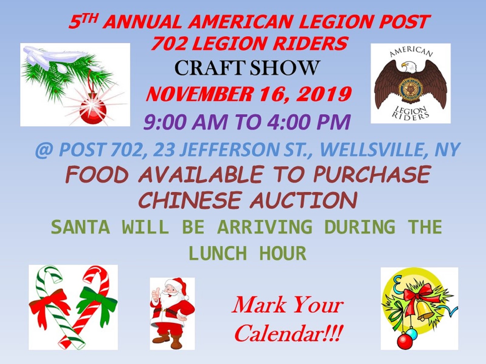 Wellsville: American Legion Riders to host craft show on Nov. 16
